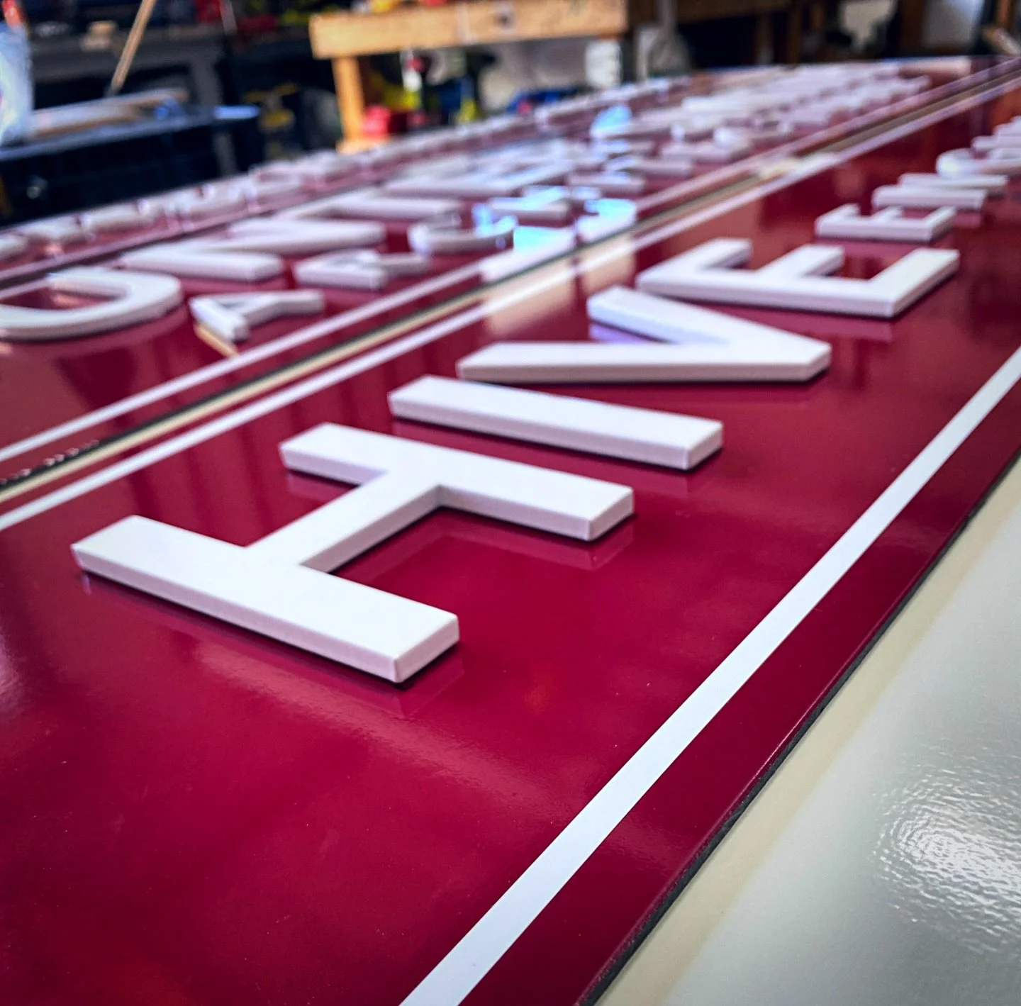 We worked together to create eye catching signage that covers the interior, ranging from layered acrylic to a full wall wrap spanning over 40 feet.